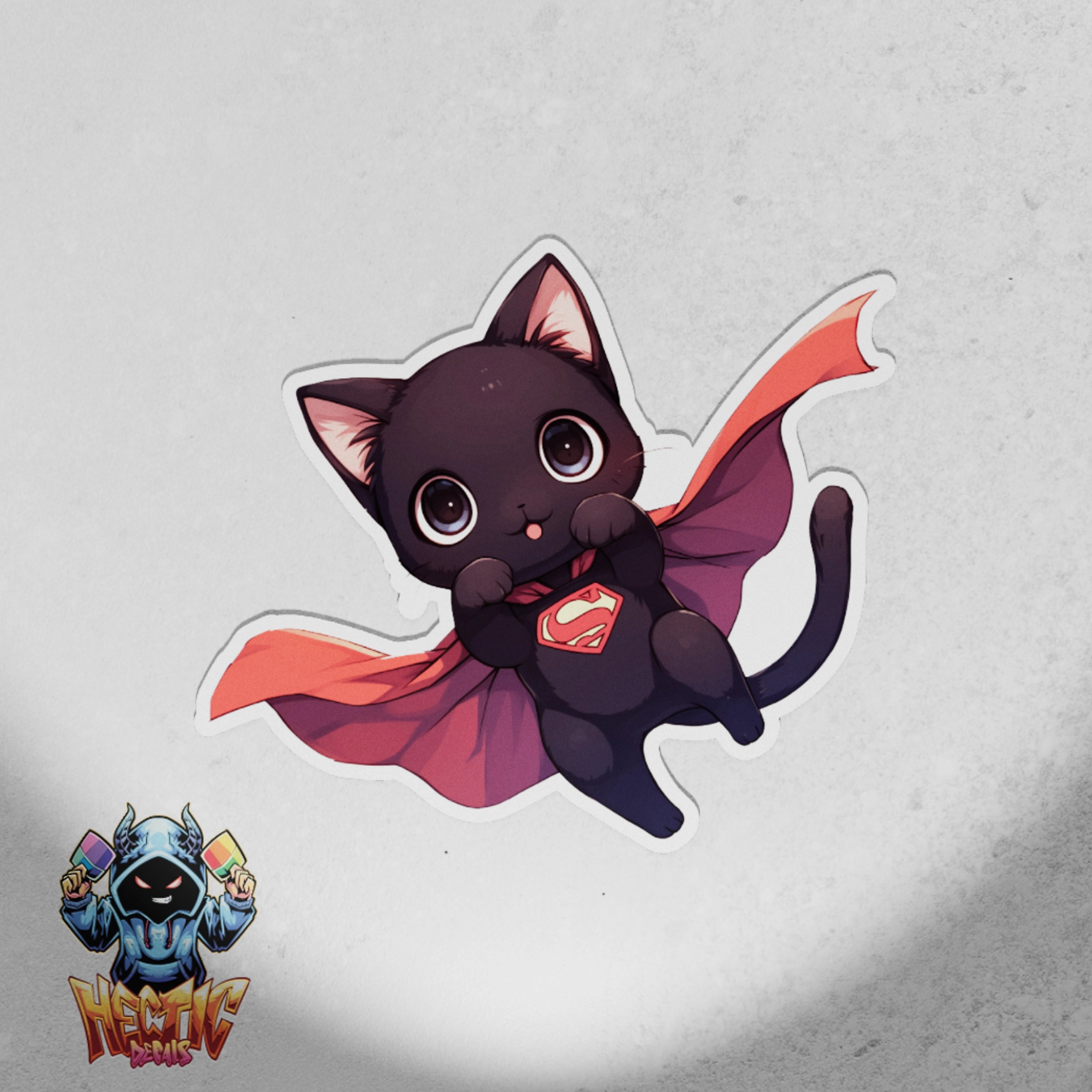 Introducing Catman, the adorable superhero kitten decal that’s ready to save the day! This charming design features a caped kitten, embodying the spirit of fun and heroism. Crafted from high-quality vinyl, this decal goes beyond a simple sticker; it’s a durable testament to your love for cute and quirky art.