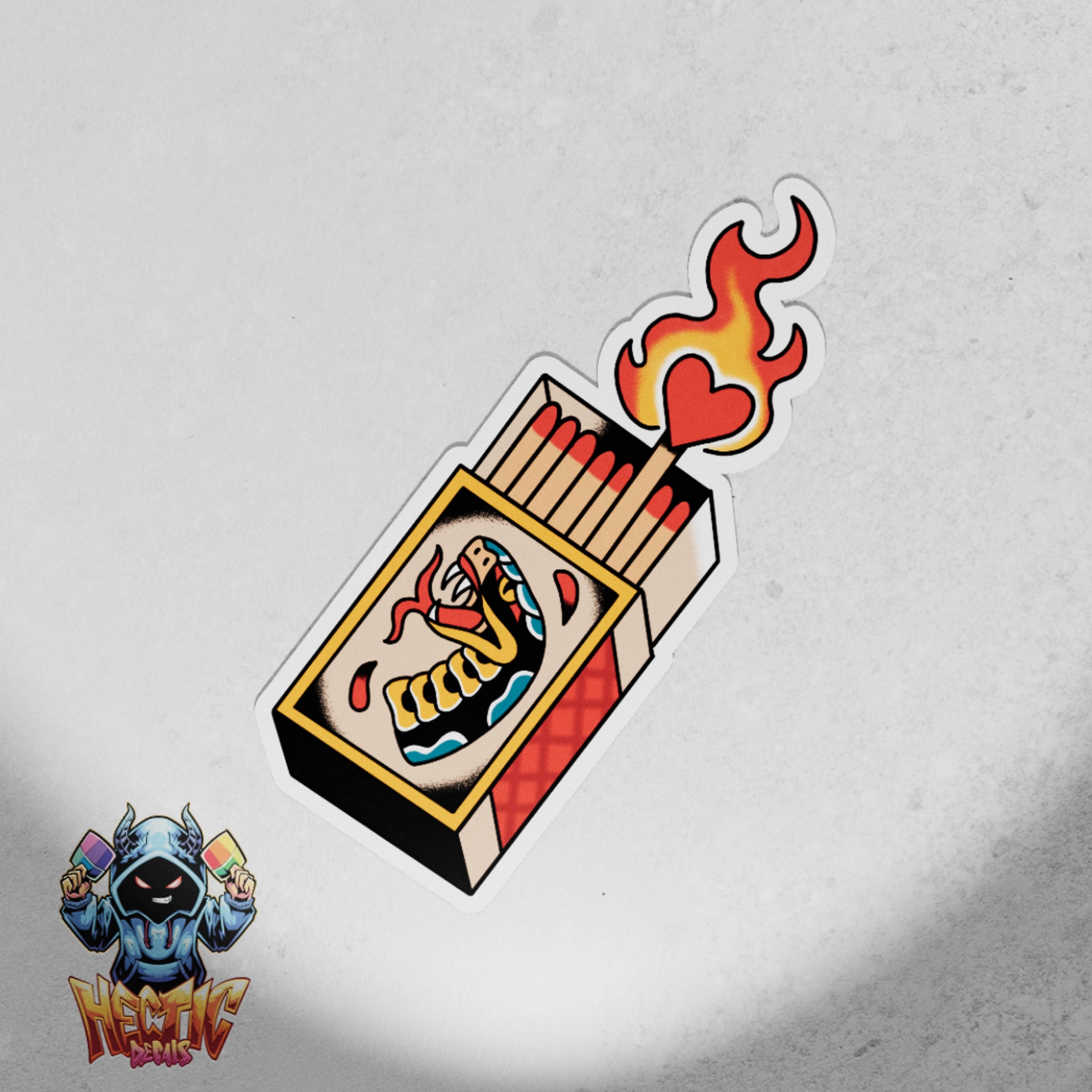 Introducing the Snake Matchbox decal, a fierce design that combines elements of nature and art. This premium vinyl sticker is perfect for those who appreciate bold expressions.