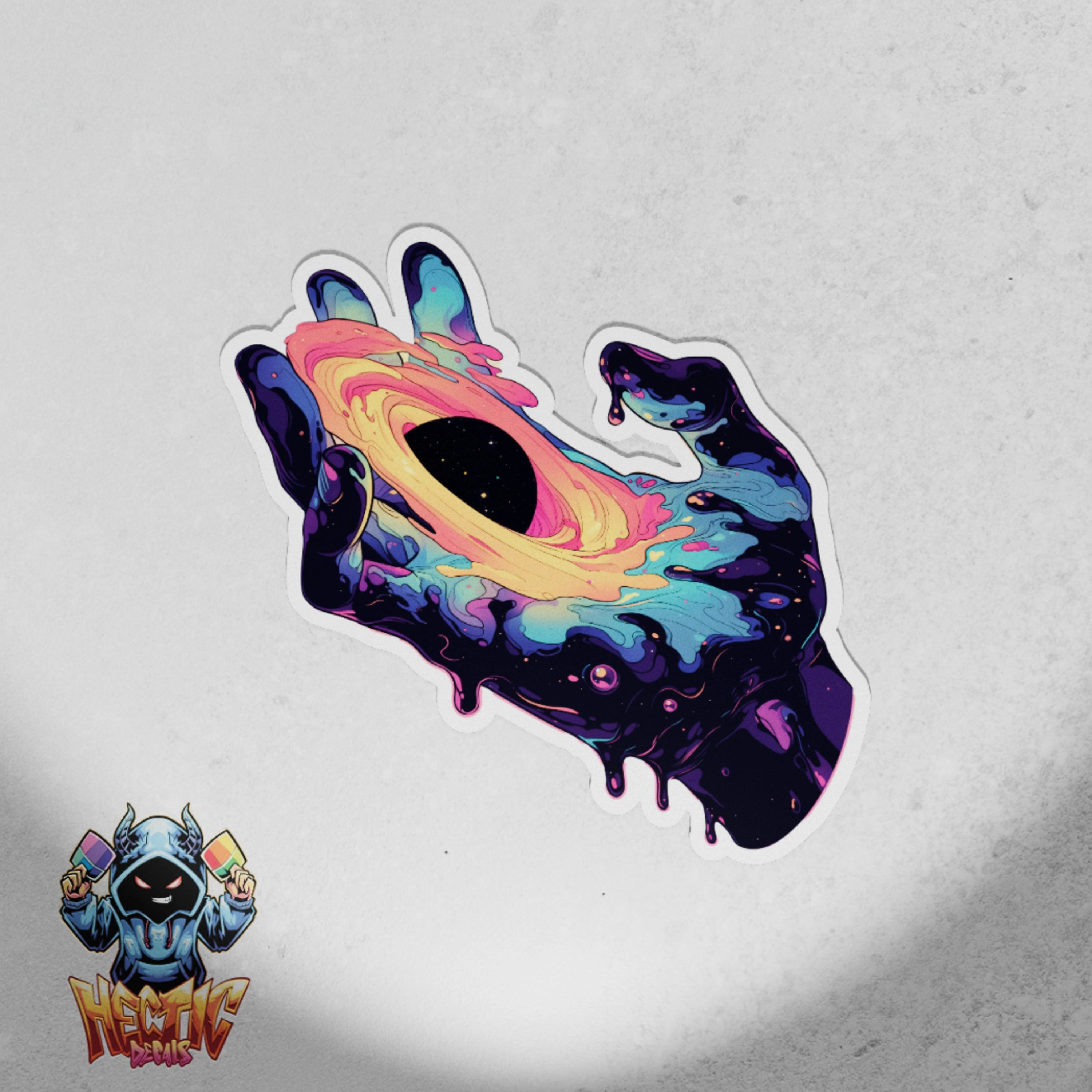 Discover the captivating Psychadelic Blackhole Hand Edition #3 decal, a stunning piece that combines art and quality. Made from high-grade vinyl, this decal is printed with eco-friendly solvent inks and laminated for added durability, ensuring it maintains its vibrant colors and intricate designs for years to come.
