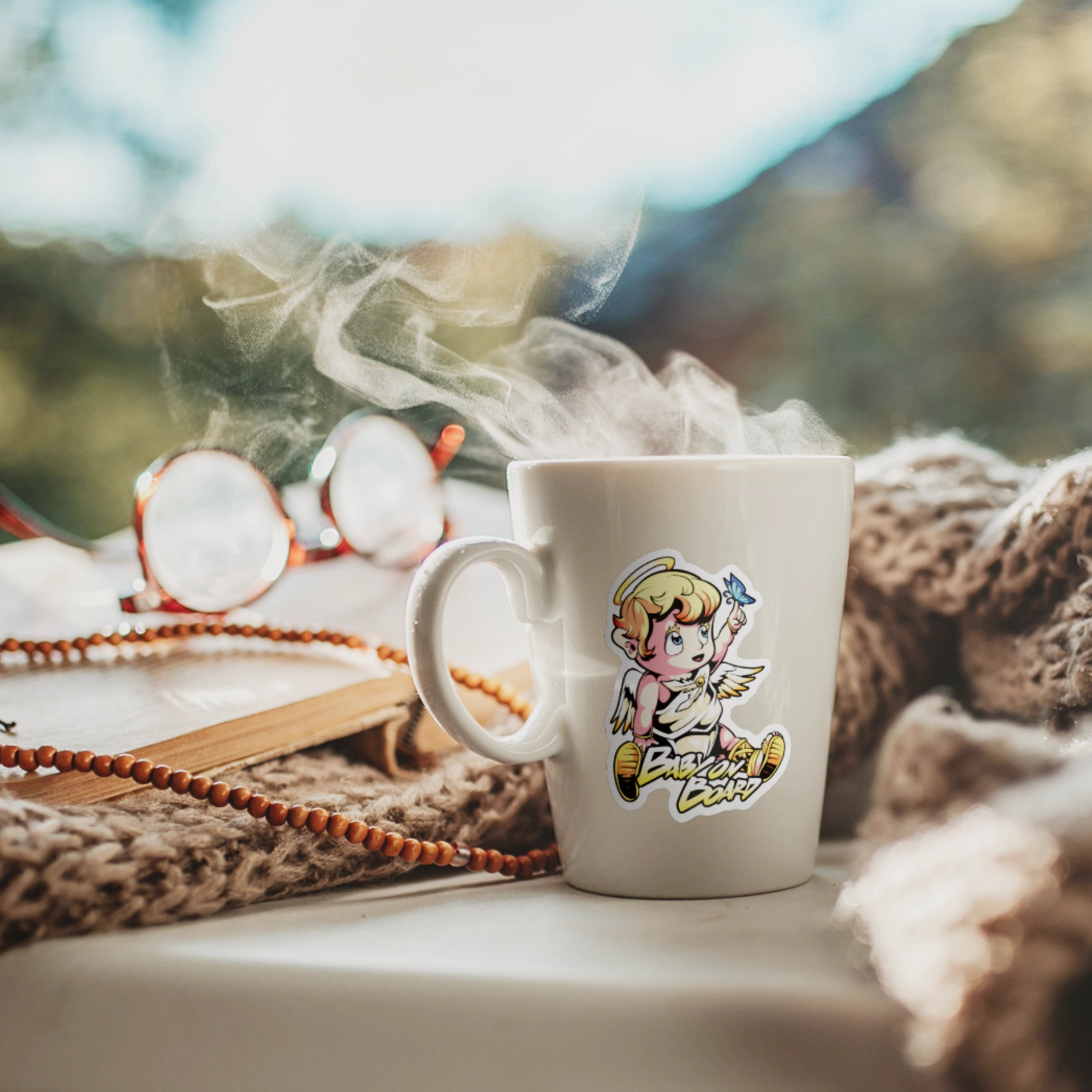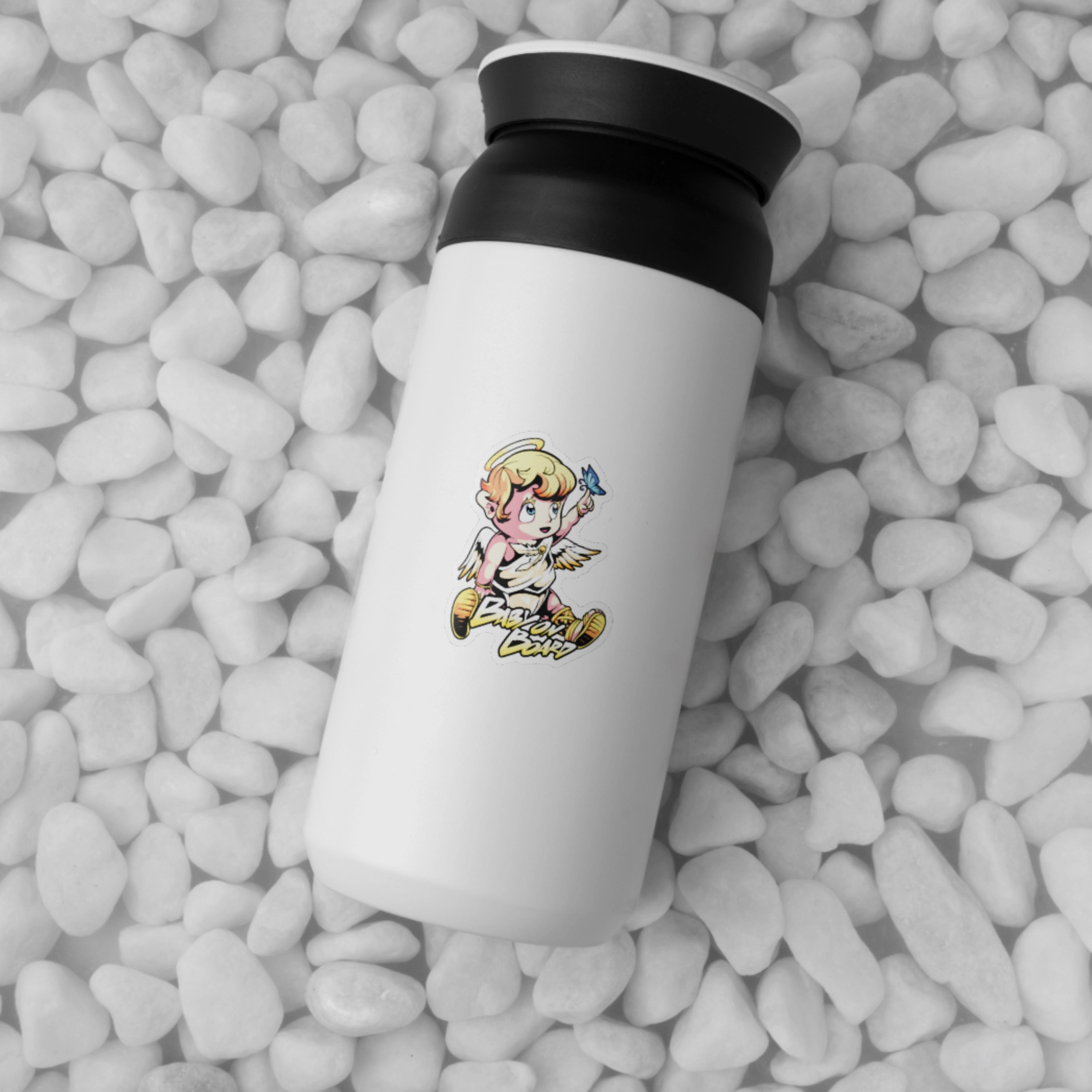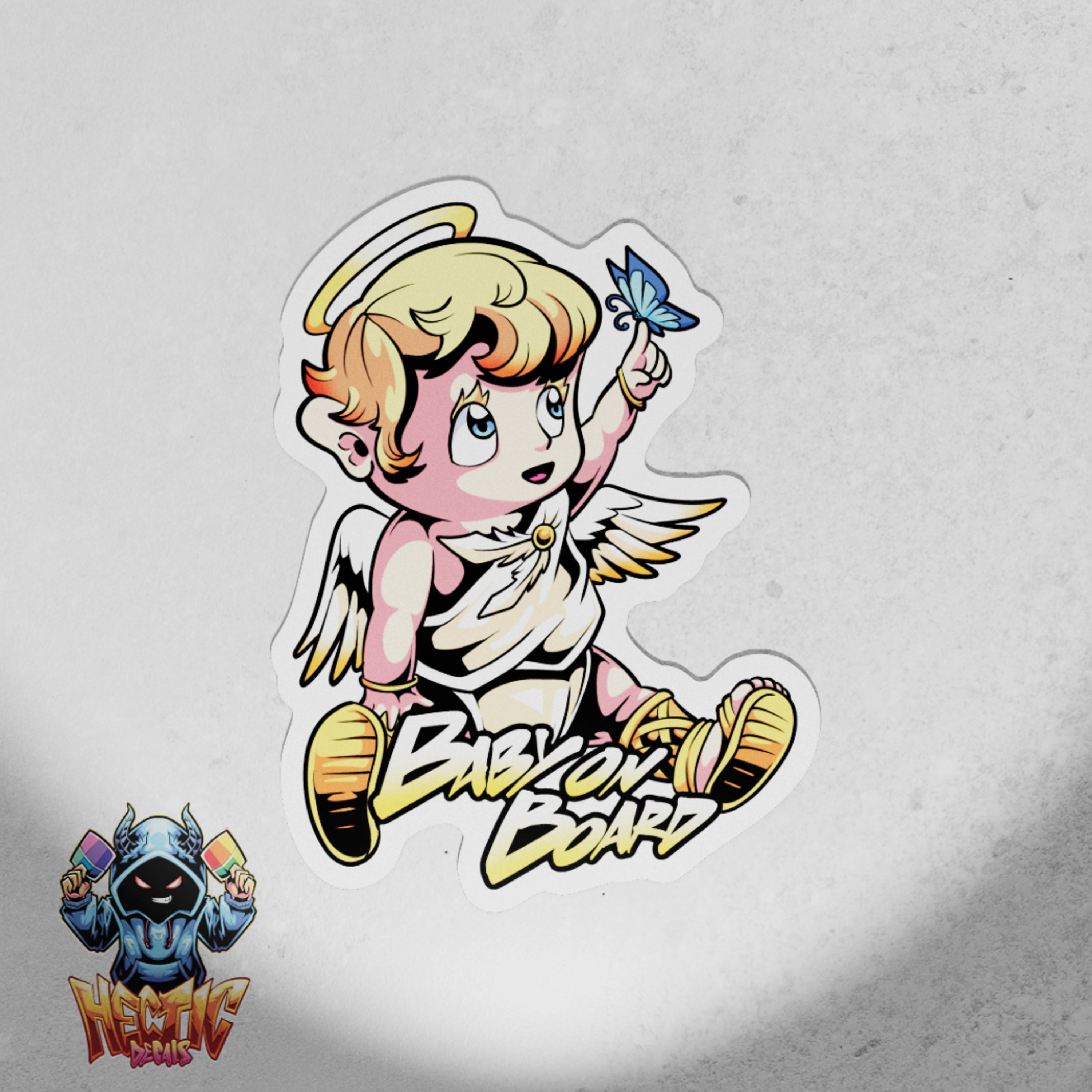 Bring a touch of whimsy to your vehicle with the Baby on Board Angel With Butterfly decal. This enchanting design features a sweet angel and a butterfly, ensuring safety while adding charm. Made from high-quality vinyl, this decal offers lasting vibrancy and durability that regular stickers simply can't match.