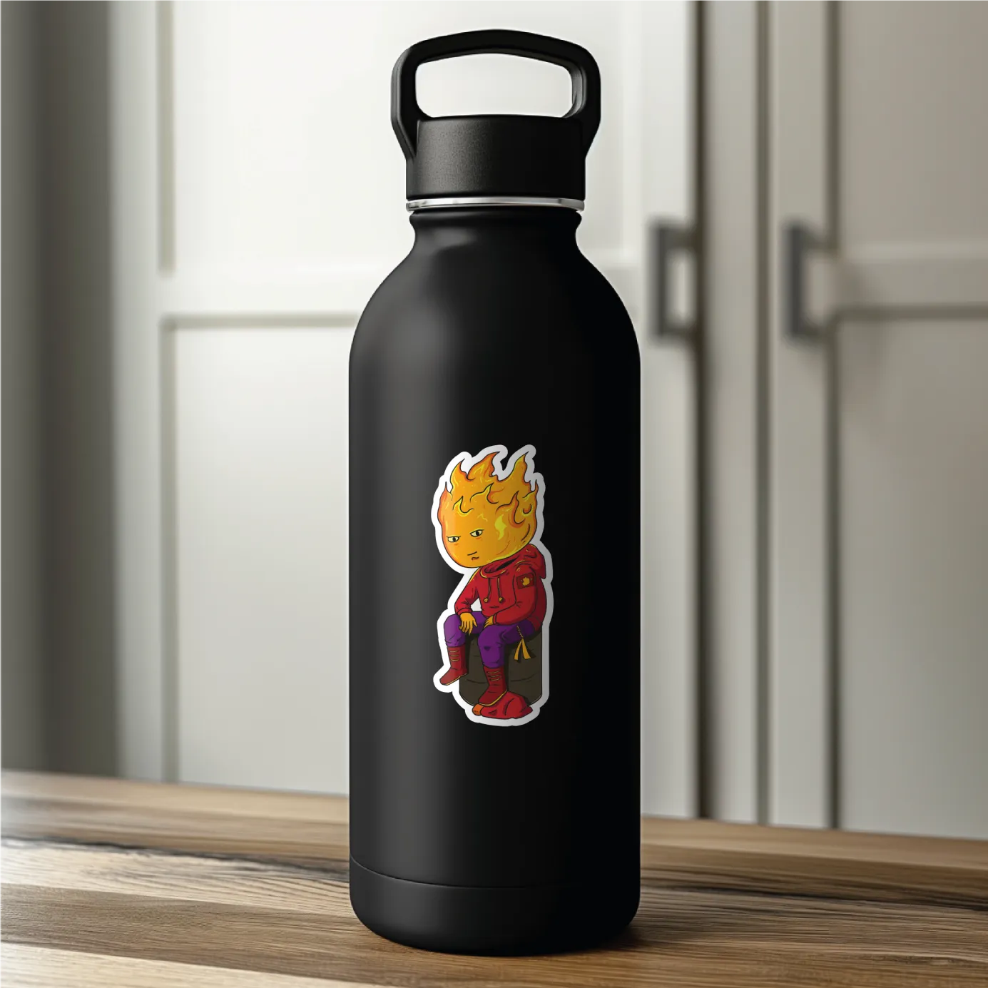 Light up your space with the Flameon the Fire Man decal. This playful design features a whimsical character engulfed in flames, bringing a sense of fun and excitement to your decor. Perfect for those who love quirky and humorous art, this decal is a fantastic addition to any collection.