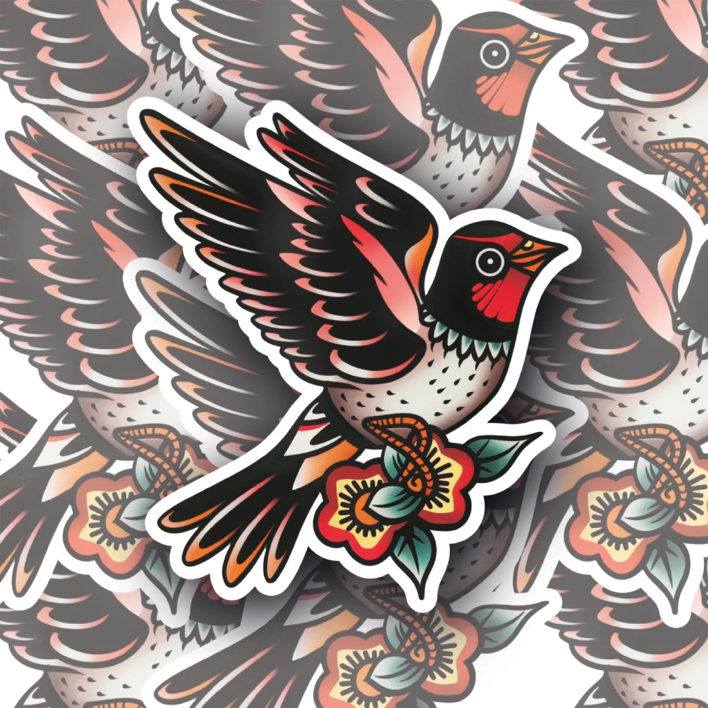 Neo Traditional Red Sparrow