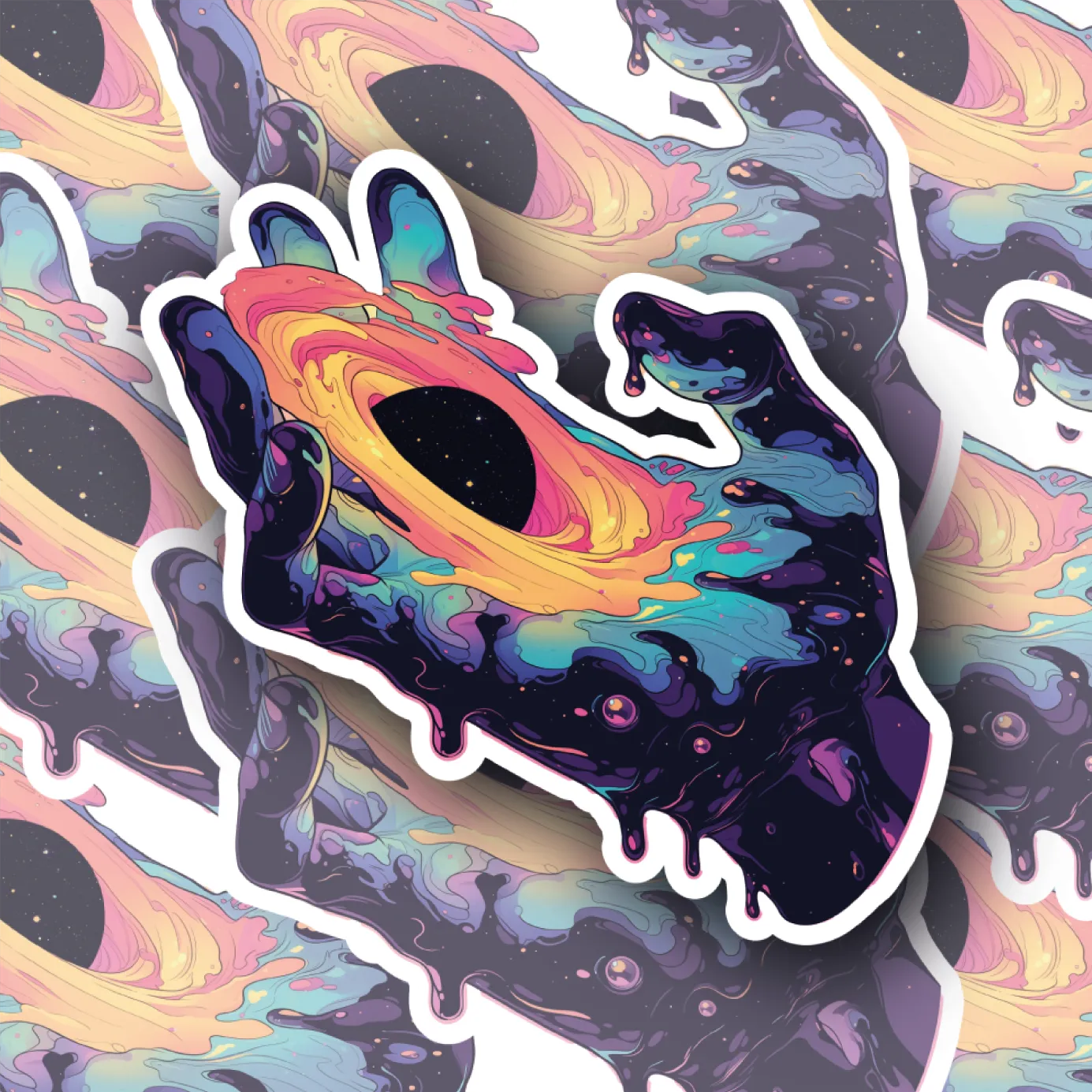 Discover the captivating Psychadelic Blackhole Hand Edition #3 decal, a stunning piece that combines art and quality. Made from high-grade vinyl, this decal is printed with eco-friendly solvent inks and laminated for added durability, ensuring it maintains its vibrant colors and intricate designs for years to come.