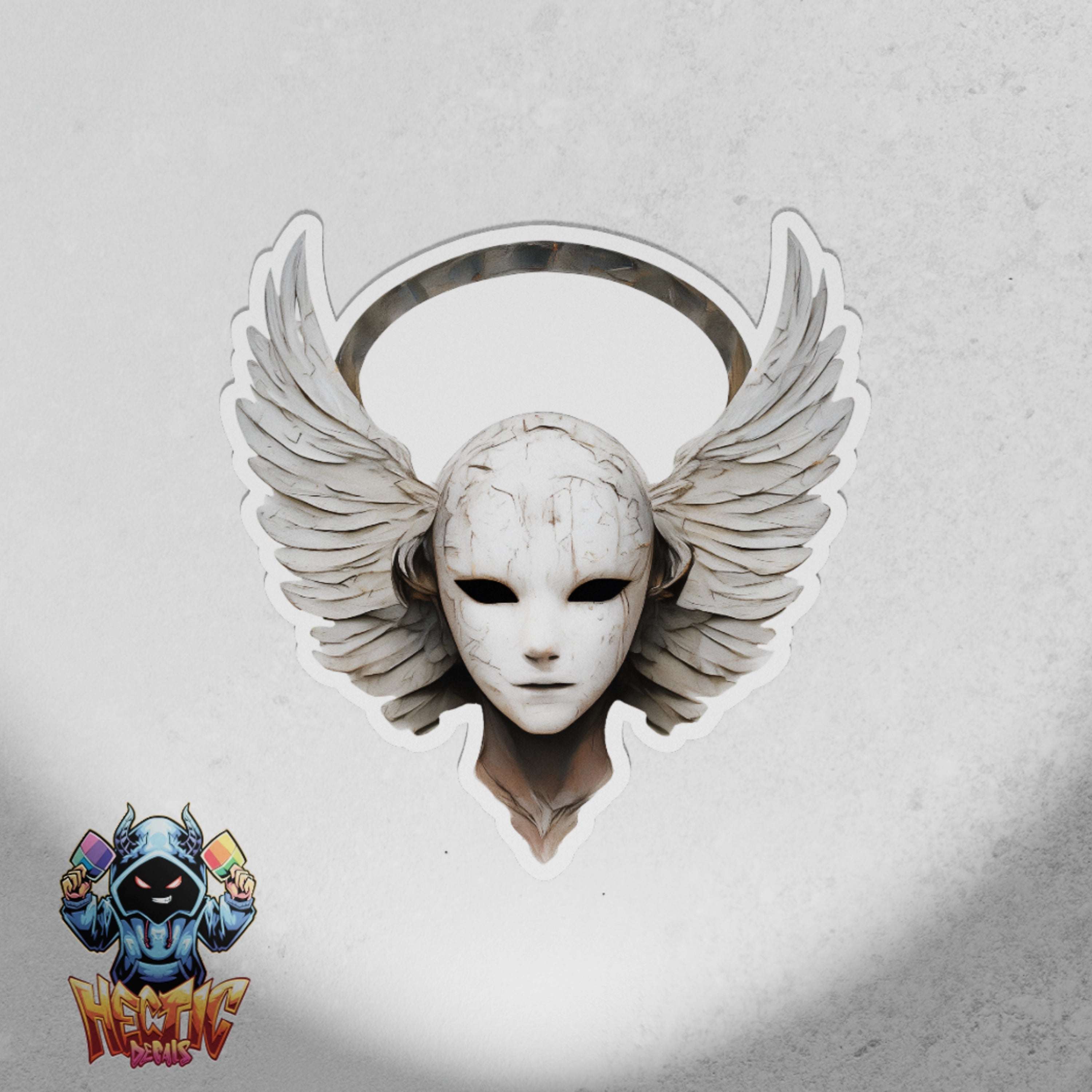 Introducing the Fractura Lux decal, a captivating design featuring a broken mask angel that merges elegance and darkness. This premium vinyl sticker is ideal for those who appreciate intricate designs.
