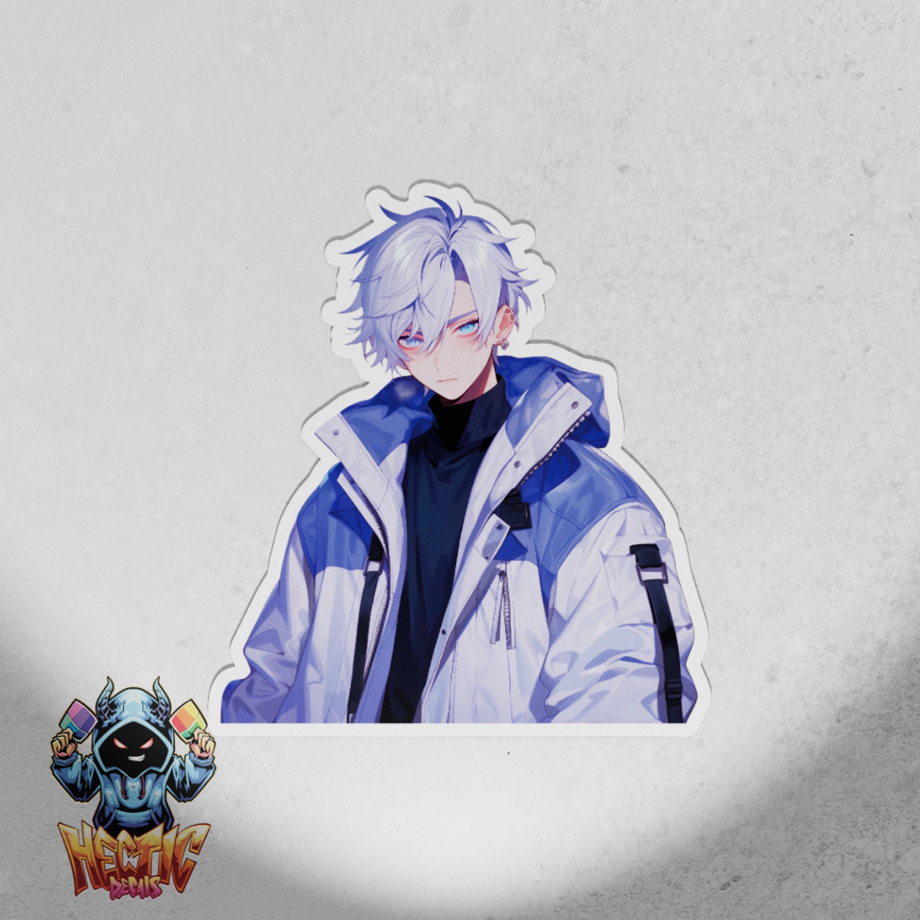Introducing the Ryo Astra the Charming decal, a captivating design that features a stylish anime boy with striking blue eyes and a cool jacket. This decal is perfect for fans of modern anime aesthetics and casual streetwear.