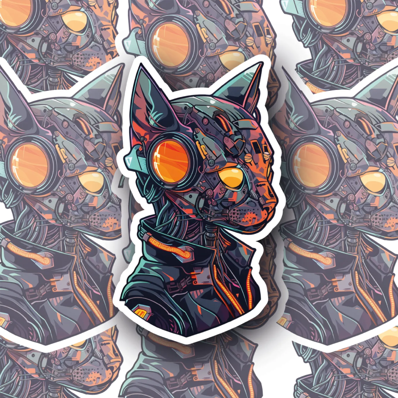 Step into the world of creativity with ShadowCircuit the Cyborg Cat decal, a stunning representation of futuristic art. This premium vinyl decal is produced in Sydney, Australia, utilizing high-quality solvent inks that ensure exceptional print quality. Unlike a regular sticker, ShadowCircuit boasts superior durability, maintaining its vibrant colors for years.