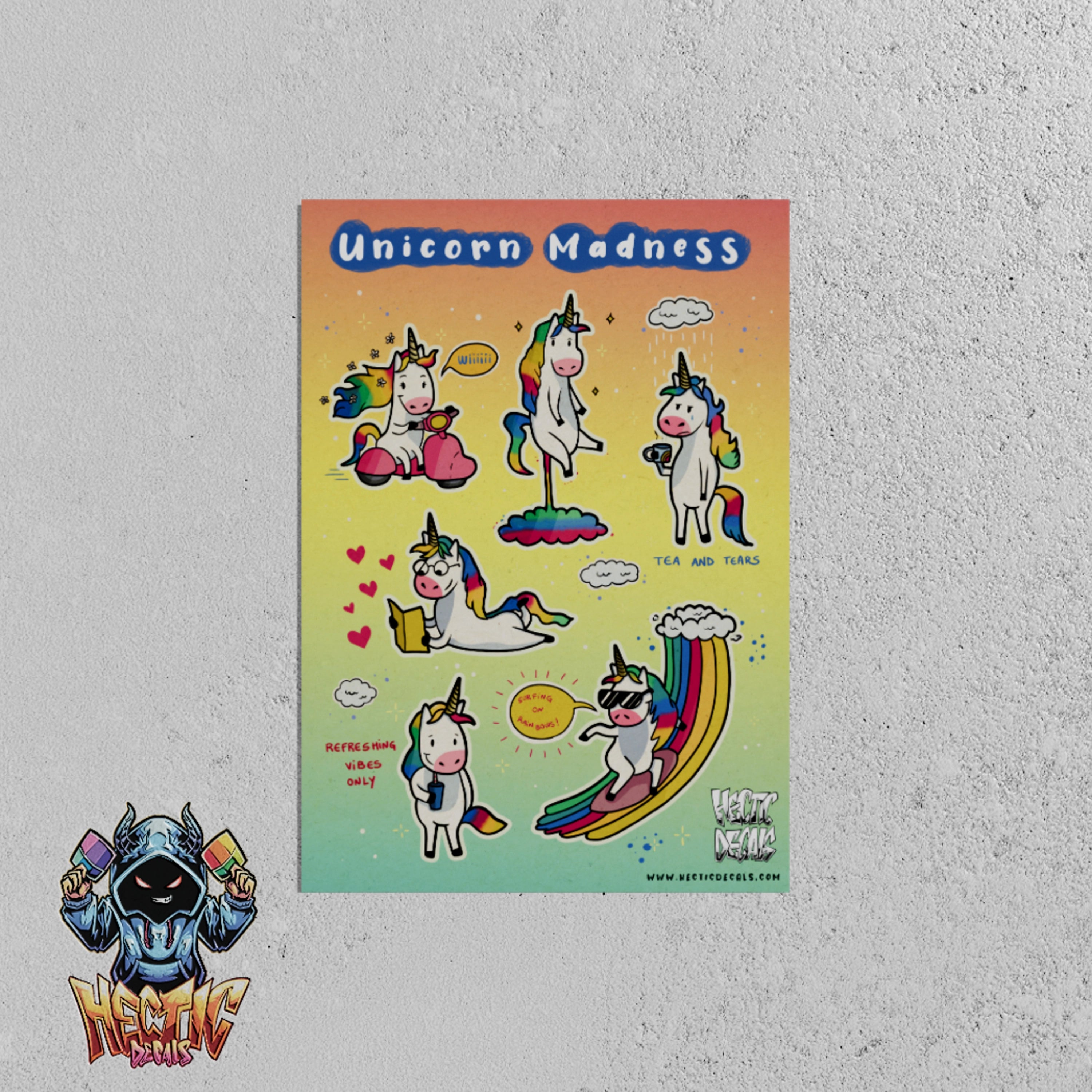 Let your imagination soar with the Unicorn Madness Sticker/Decal Sheet. This enchanting collection features a variety of whimsical unicorn designs, perfect for children who love all things magical. These stickers are ideal for decorating journals, school projects, or simply adding a touch of fun to any surface!